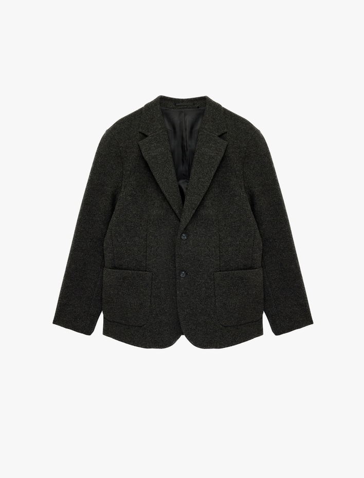 Uzun Kollu Cepli Mono Yaka Kaşe Blazer Ceket Sepete Ekle
