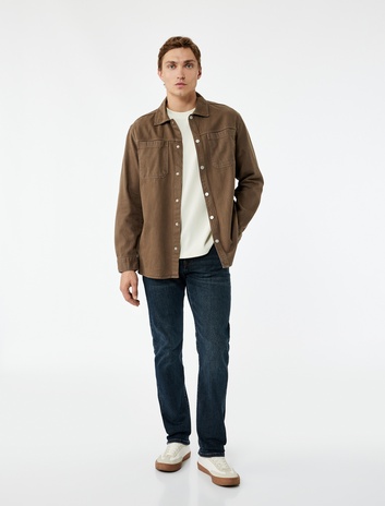 Cep Detaylı Uzun Kollu Gömlek Yaka Düğmeli Slim Fit Kaşe Ceket