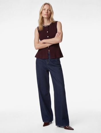Koton X Melis Ağazat - Mücevher Düğmeli Bisiklet Yaka Peplum Taşlı Triko Yelek Sepete Ekle