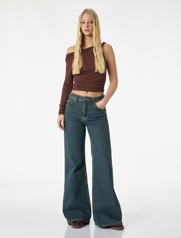 Normal Bel Nervürlü Bol Paça Pantolon Sepete Ekle