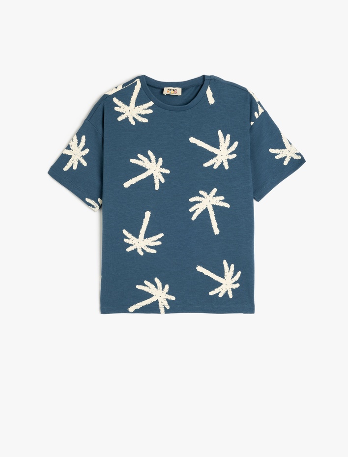 Erkek Çocuk Palmiye Desenli Bisiklet Yaka Oversize Pamuklu Tişört