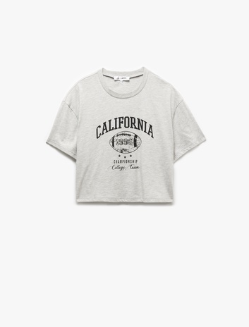 Kısa Kollu Baskılı Viskon Karışımlı Rahat Kesim Crop Tişört