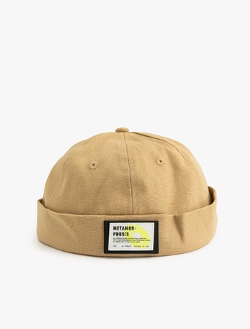 Erkek Etiket Detaylı Pamuklu Katlamalı Sipersiz Şapka