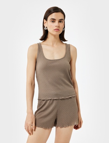 Pamuklu Bürümcük Kumaş Slim Fit Bisiklet Yaka Kolsuz Bluz Sepete Ekle