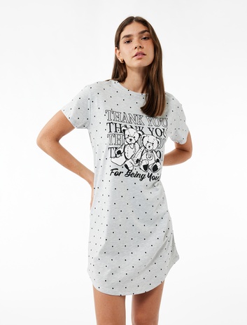 Kısa Kollu Bisiklet Yaka Ayıcık Baskılı Gecelik Sepete Ekle