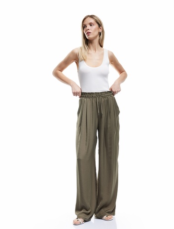 Aerobin Kumaş Beli Bağcıklı Cepli Geniş Paça Palazzo Saten Pantolon