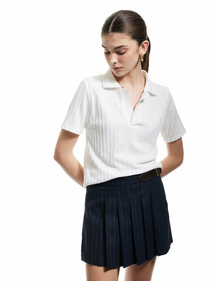 Saç Örgü Dokulu Kısa Kollu Polo Yaka Tişört