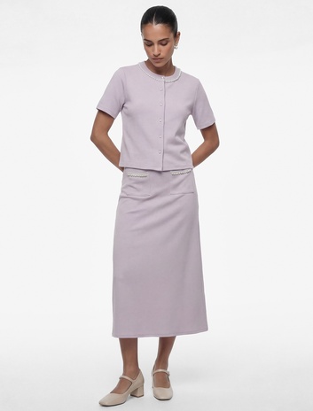 İnci Detaylı Cepli Midi Yırtmaçlı Kalem Etek Sepete Ekle
