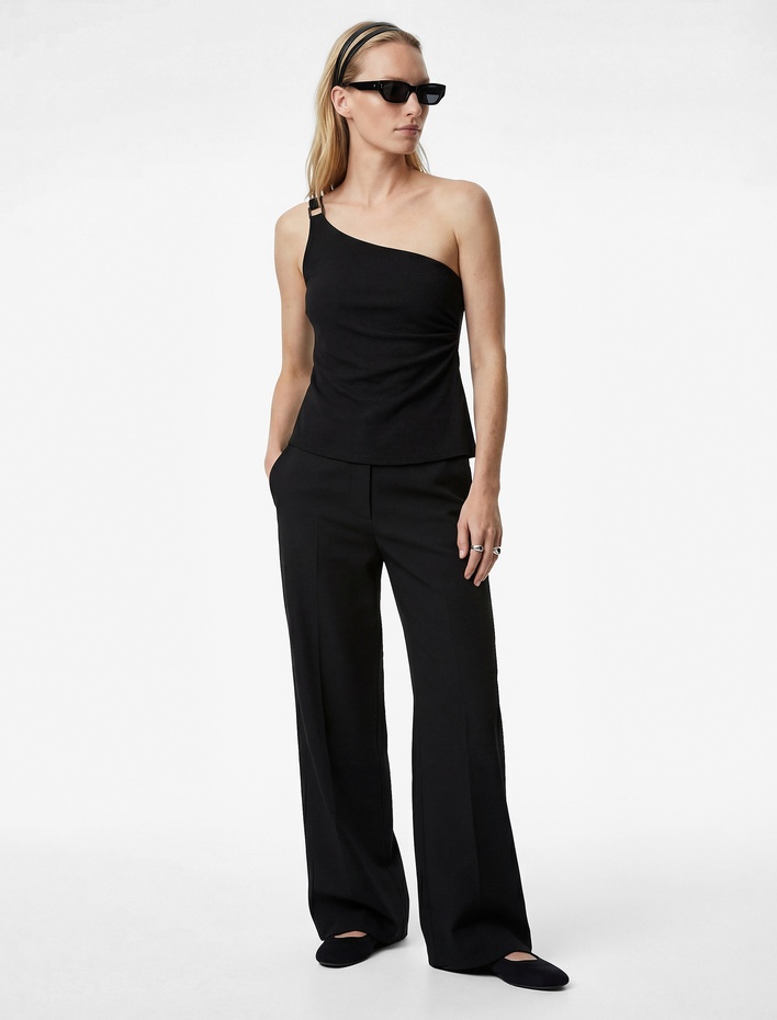 Asimetrik Tek Omuz Metal Aksesuarlı Kolsuz Bluz Sepete Ekle