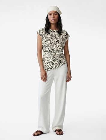 Drape Detaylı Kayık Yuvarlak Yaka Kolsuz Desenli Bluz Sepete Ekle