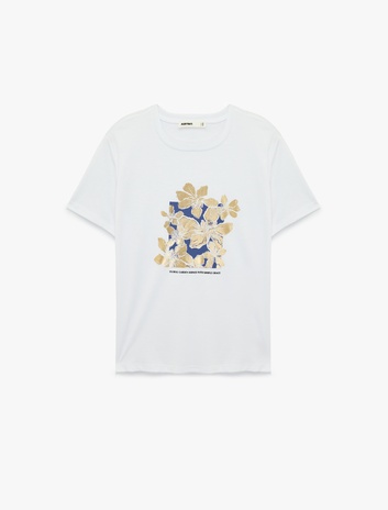 Kısa Kollu Bisiklet Yaka Varak Baskılı Çiçekli Tişört Sepete Ekle
