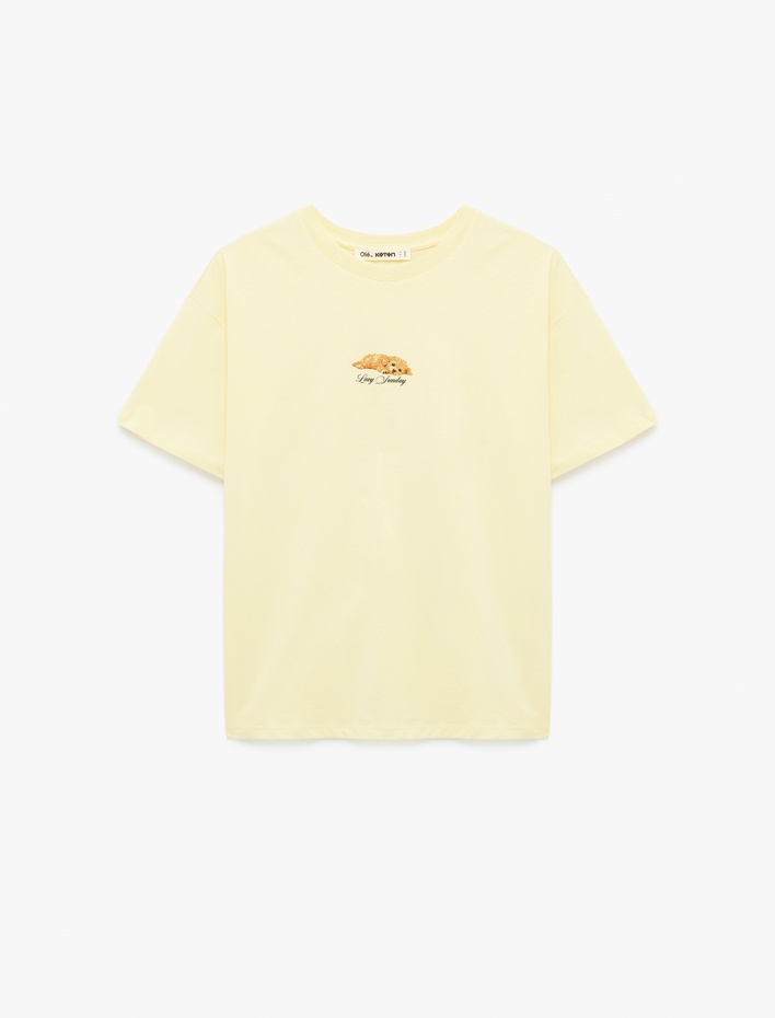 Kısa Kollu Bisiklet Yaka Baskılı Rahat Kalıp Tişört Sepete Ekle