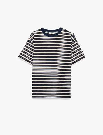 Çizgili Rahat Kalıp Kısa Kollu Bisiklet Yaka Pamuklu Tişört Sepete Ekle