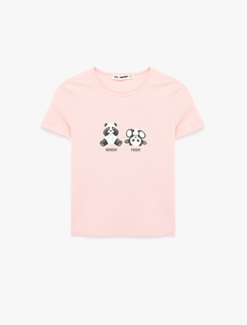 Pamuklu Baskılı Kısa Kollu Bisiklet Yaka Tişört Sepete Ekle