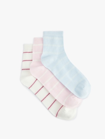 Çok Renkli Çizgili Pamuklu 3'lü Soket Çorap Seti Sepete Ekle