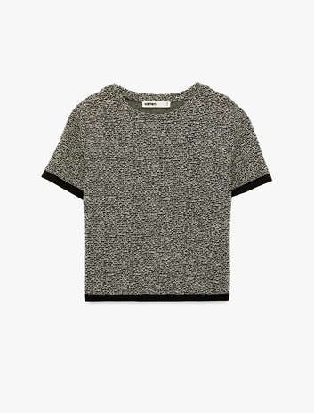 Metalik İplik Detaylı Parıltılı Kısa Kollu Bisiklet Yaka Dokulu Tişört Sepete Ekle