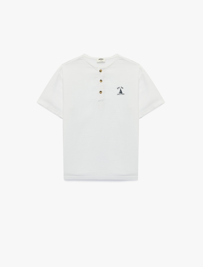 Kısa Kollu Bisiklet Yaka Düğmeli Pamuklu Tişört Sepete Ekle