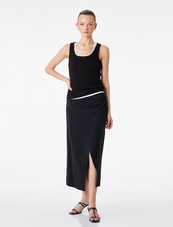 Viskon Kumaş Kruvaze Midi Etek
