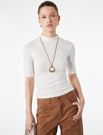 Pamuklu Slim Fit 3/4 Kollu Dik Yaka Tişört Sepete Ekle