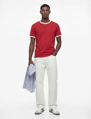 { "id": "8684848189909", "name": "Kısa Kollu Biyeli Pamuklu Tok Kumaş Bisiklet Yaka Slim Fit Tişört", "taxonomy":["MENSWEAR","CASUAL","MEN","JERSEY","TSHIRT SS"], "currency": "TRY", "unit_price": 799.99 , "unit_sale_price": 799.99 , "url": "https://www.koton.com/kisa-kollu-biyeli-pamuklu-tok-kumas-bisiklet-yaka-slim-fit-tisort-kirmizi-4142204/", "stock": 6, "color": "KIRMIZI", "size": "XS", "product_image_url": "https://ktnimg2.mncdn.com/products/2026/02/26/3199903/2ba5492b-5f2e-4b3a-aeac-78705f859d61_size870x1142.jpg" }