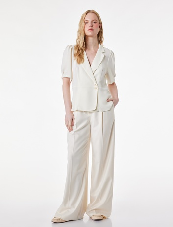 Beli Lastikli Yırtmaç Detaylı Dokulu Geniş Paça Pantolon Sepete Ekle