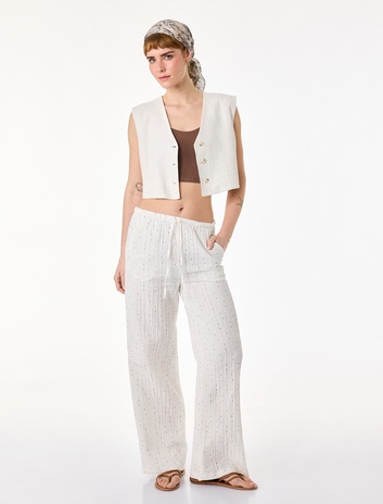 { "id": "8684847879320", "name": "Puantiyeli Beli Bağcıklı Rahat Kalıp Geniş Paça Müslin Pantolon", "taxonomy":["OLE","OLE","TEENAGE","WOVEN BOTTOMS","TROUSERS"], "currency": "TRY", "unit_price": 1499.99 , "unit_sale_price": 1499.99 , "url": "https://www.koton.com/puantiyeli-beli-bagcikli-rahat-kalip-genis-paca-muslin-pantolon-ekru-desenli-4135882-2/", "stock": 4, "color": "EKRU DESENLİ", "size": "36", "product_image_url": "https://ktnimg2.mncdn.com/products/2026/04/03/3195390/bd765d98-2015-40a9-a4bf-fe84e72441cd_size870x1142.jpg" }