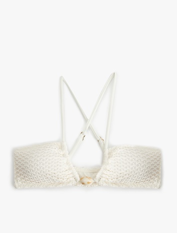 Deniz Kabuğu Detaylı Büzgülü Fileli Bikini Üstü