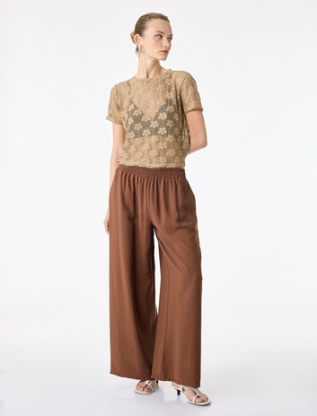 Aerobin Kumaş Beli Bağcıklı Cepli Geniş Paça Palazzo Pantolon Sepete Ekle