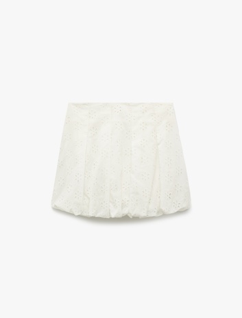 Pamuklu Astarlı Fistolu Brode Detaylı Mini Balon Etek