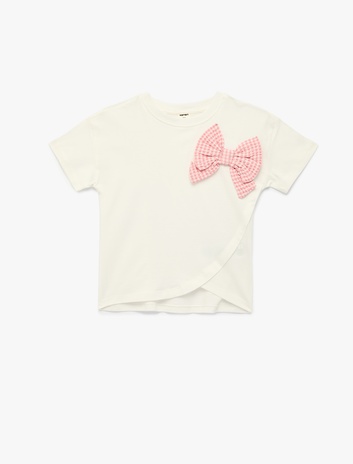 Pamuklu Kısa Kollu Bisiklet Yaka Fiyonklu Tişört Sepete Ekle