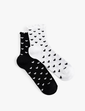 Kadın 2'li Kalpli Çok Renkli Fırfırlı Soket Çorap Seti