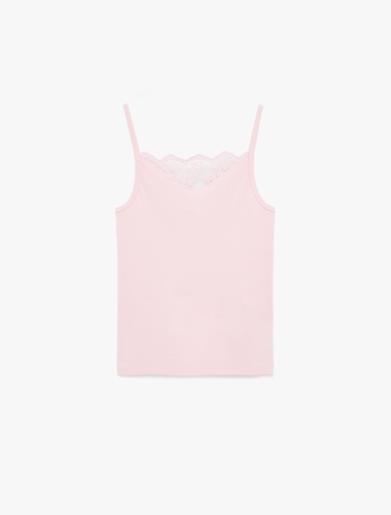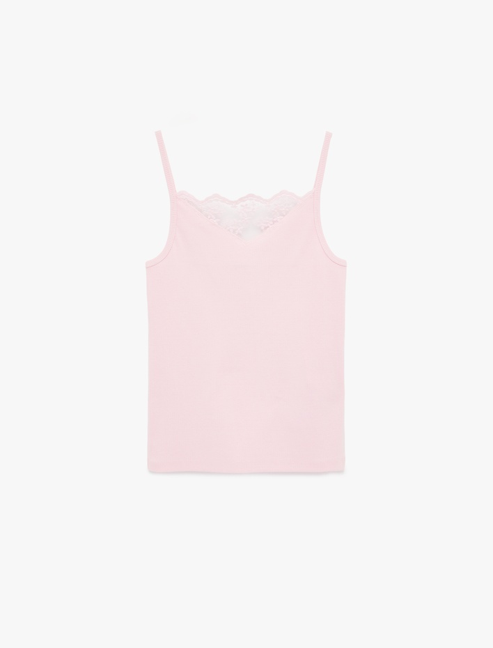 Pamuklu İp Askılı Dantel Detaylı Slim Fit Kolsuz Atlet Sepete Ekle