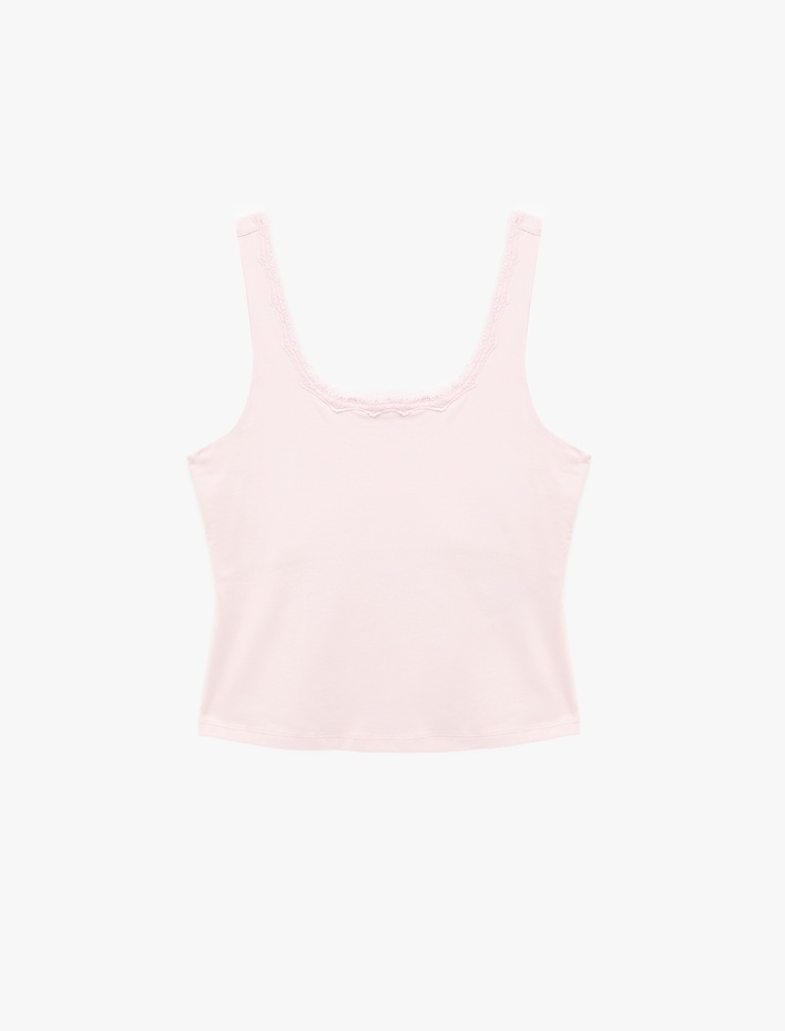 Slim Fit Pamuklu U Yaka Dantel Detaylı Kolsuz Bluz Sepete Ekle