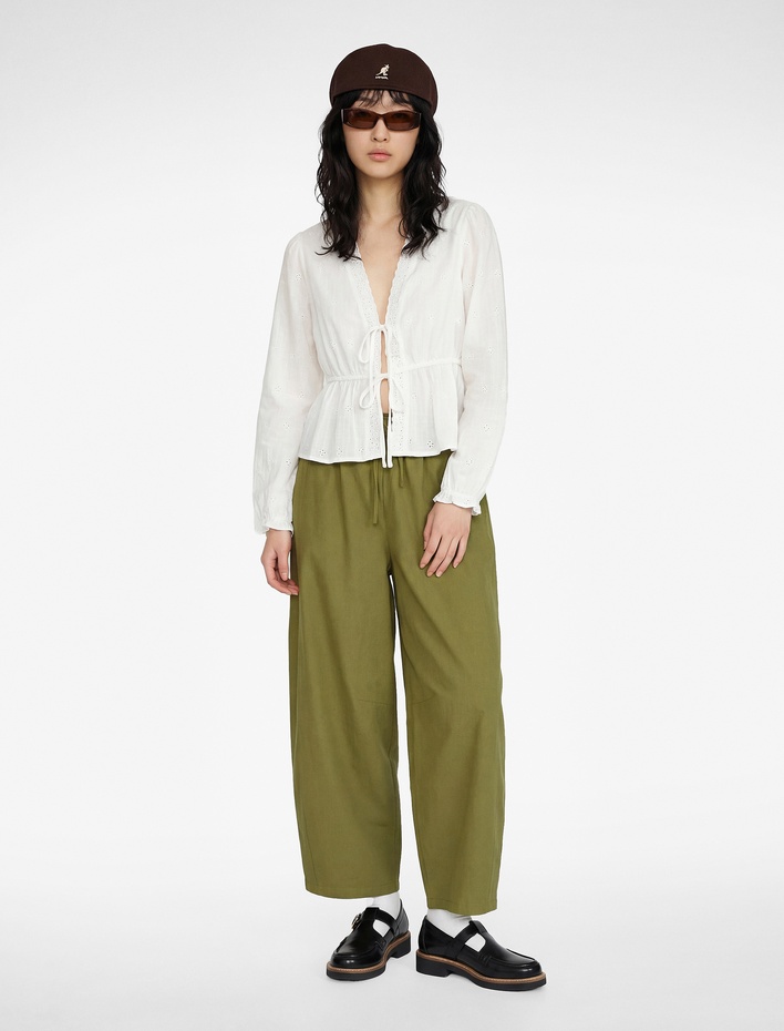 Bürümcük Kumaş Beli Bağcıklı Geniş Paça Pantolon Sepete Ekle
