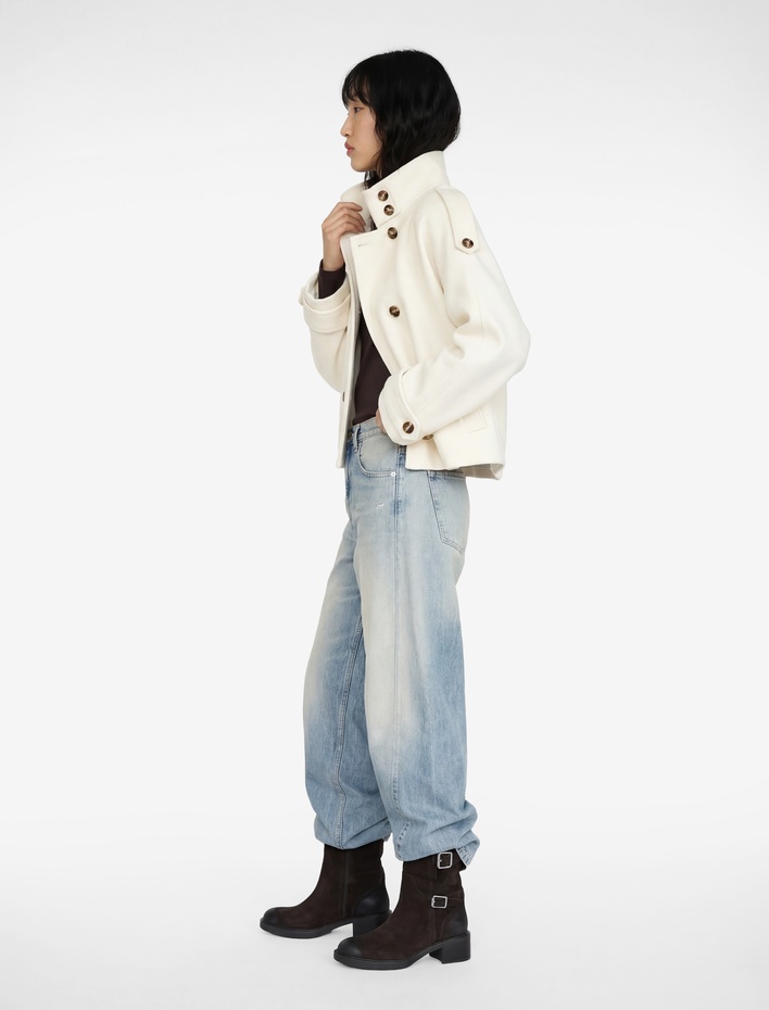 Dik Yaka Uzun Kollu Düğmeli Cep Detaylı Kaşe Ceket Sepete Ekle