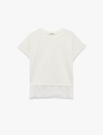 Kısa Kollu Bisiklet Yaka Pamuklu Simli Dantelli Tişört Sepete Ekle