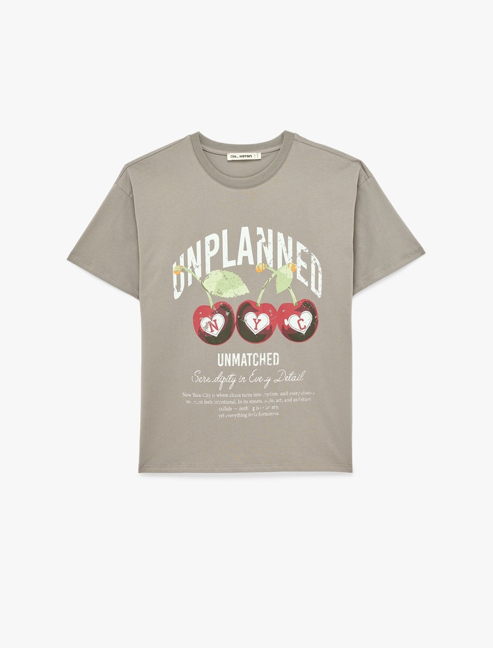 Rahat Kalıp Kısa Kollu Kiraz Baskılı Bisiklet Yaka Tişört Sepete Ekle