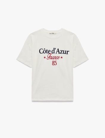 Rahat Kalıp Kısa Kollu Nakışlı Pamuklu Bisiklet Yaka Tişört Sepete Ekle