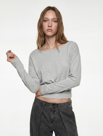 Regular Fit Uzun Kollu Kayık Yuvarlak Yaka Tişört Sepete Ekle