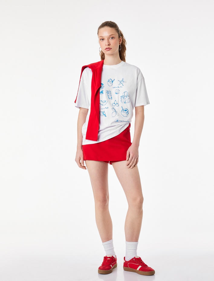 Rahat Kalıp Kısa Kollu Bisiklet Yaka Pamuklu Baskılı Tişört Sepete Ekle