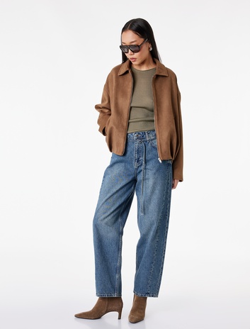 Pamuklu Kemerli Dikiş Detaylı Rahat Kalıp Düz Paça Denim Pantolon - Ballon Jeans Sepete Ekle