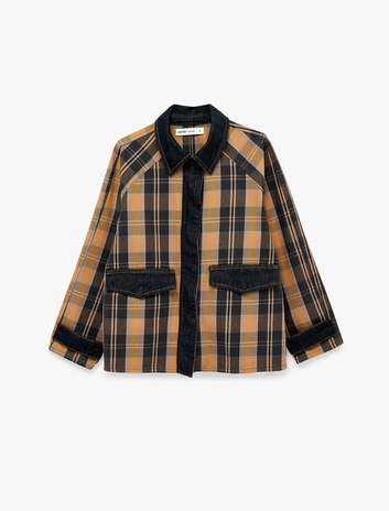 Pamuklu Uzun Kollu Klasik Yaka Cep Detaylı Ekoseli Oversize Shacket Sepete Ekle