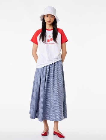 Rahat Kalıp Kısa Reglan Kollu Bisiklet Yaka Kiraz Baskılı Tişört Sepete Ekle