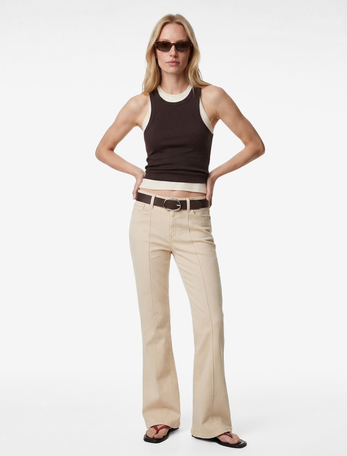 { "item_name": "Nervürlü Cepli Düğmeli İspanyol Paça Denim Pantolon - Flare Jeans", "item_id": "8684848461807", "price": 1699.99 , "item_brand": "Koton", "item_category":"KOTON JEANS", "item_category2":"OLE", "item_category3":"WOMEN", "item_category4":"WOVEN BOTTOMS", "item_category5":"TROUSERS", "item_season":"2026 SPRING/SUMMER", "item_variant": "BEJ|38", "item_list_name":"Ole - Yeni Sezon Yaz - Dinamik", "item_list_id":"6535", "index": 701 , "quantity":1, "base_code": "6SAL40080MW" }