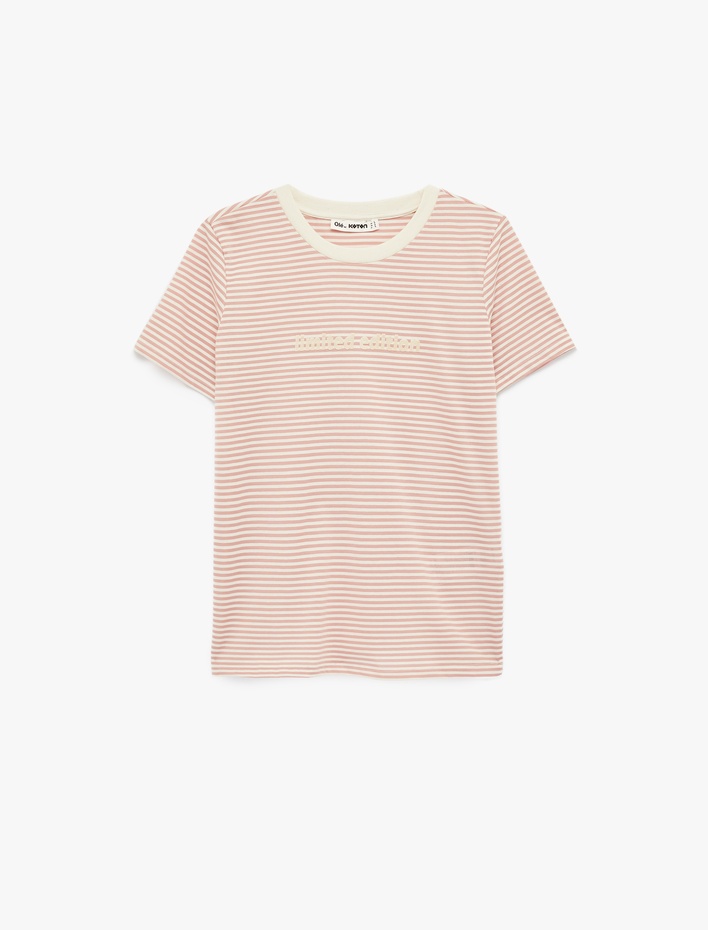 Pamuklu Bisiklet Yaka Biyeli Kısa Kollu Baskılı Tişört Sepete Ekle