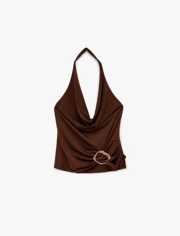 Metal Aksesuarlı Asimetrik Yaka Kolsuz Bluz