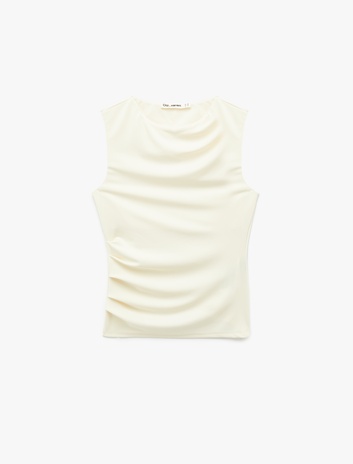 Slim Fit Drape Detaylı Kolsuz Bisiklet Yaka Bluz Sepete Ekle