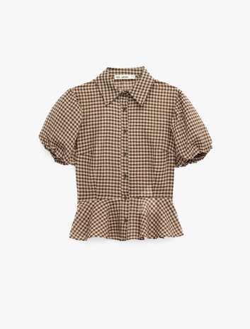 Pamuklu Fırfırlı Balon Kollu Ekoseli Gömlek Sepete Ekle