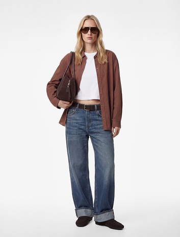 Viskon Karışımlı Klasik Yaka Uzun Geniş Kollu Oversize Gömlek Sepete Ekle