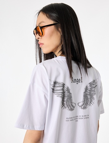 Melek Baskılı Rahat Kalıp Kısa Kollu Pamuklu Tişört